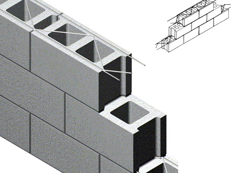 Horizontal steel reinforcement is placed between every other row of block to prevent stairstep cracks in the block. This again is a commercial application for residential construction and not required by the county. This step, combined with the previous steps, creates one of the strongest shell structures available in Hillsborough County.