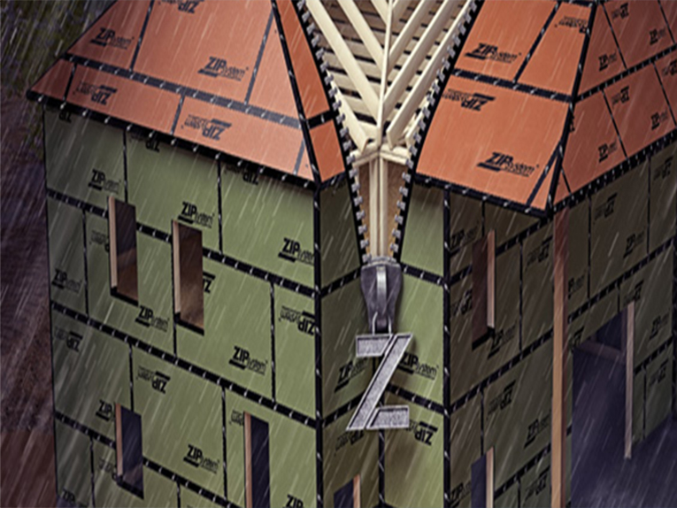 Huber's Zip Roofing System is used exclusively for our roof sheathing. The sheathing is guaranteed waterproof for 30 years and serves as a secondary layer of protection against water intrusion. Additionally, our roof sheathing isn't damaged by rains during the construction process. Ordinary sheathing becomes delaminated and swells after just one rain event.