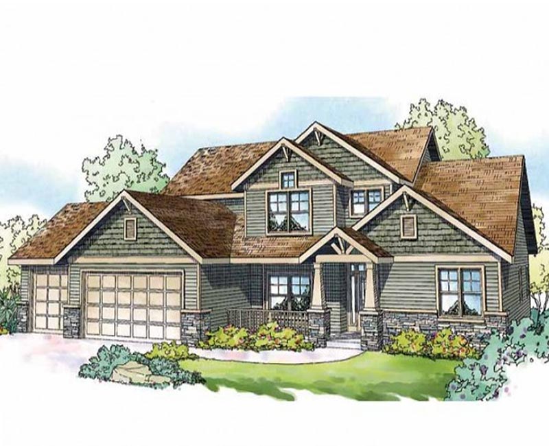 Crastsman styling adorns the exterior of this traditional home. The interior is a two-story, great room plan with a large eat-in kitchen area and study.
