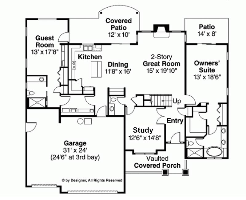 For more plans, choose from any site including: Homeplans.com, Eplans.com, Saterdesign.com, Dongardner.com, or Architecturaldesigns.com. Modifications can be made to any plan. *Square footages to this plan may have been adjusted for exterior block wall construction.