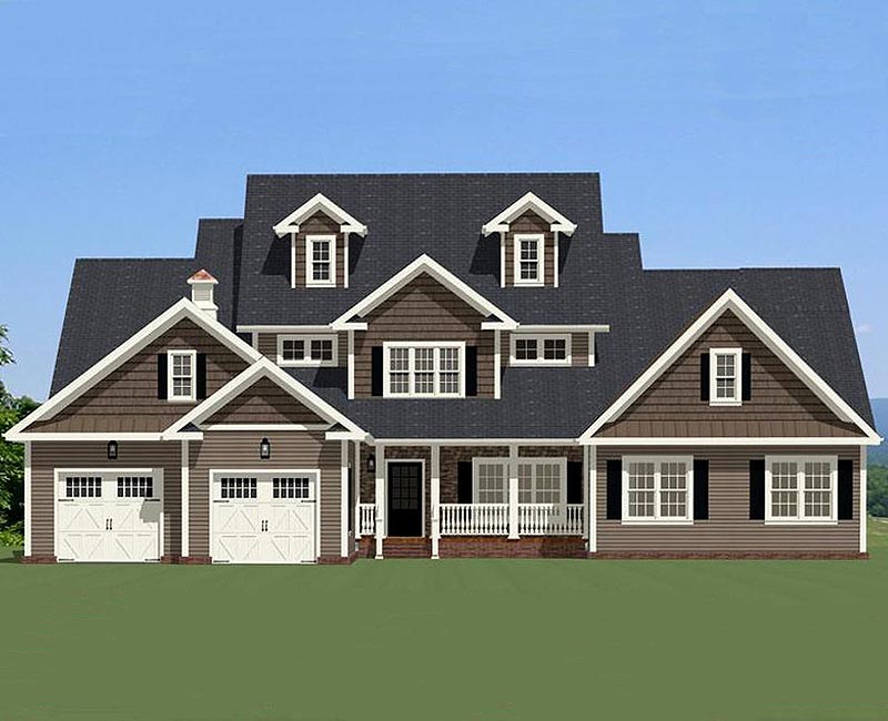 Style and accents abound with this traditional country farmhouse. The multiple front facing gables add great visual interest. The interior of the home offers a oversized, 2-story family room with fireplace, 4+ bedroorms with large walk-in closets, downstairs master bedroom, and a separate gameroom.