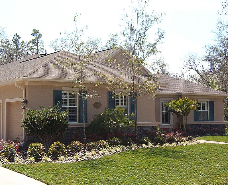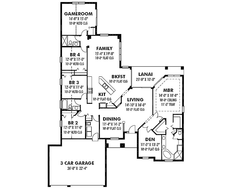 The attractive and elegant front elevation on this modern Mediterranean home is inviting to your guests. This modest size home lives very large. It has 4 bedrooms, formal living room and dining rooms, large family room and a game room as well. The home lives far larger than the 2830 square feet suggest. Great views to the pool area from the five main rooms of the home bring the outdoors in and make the home seem even larger. This is a popular plan.