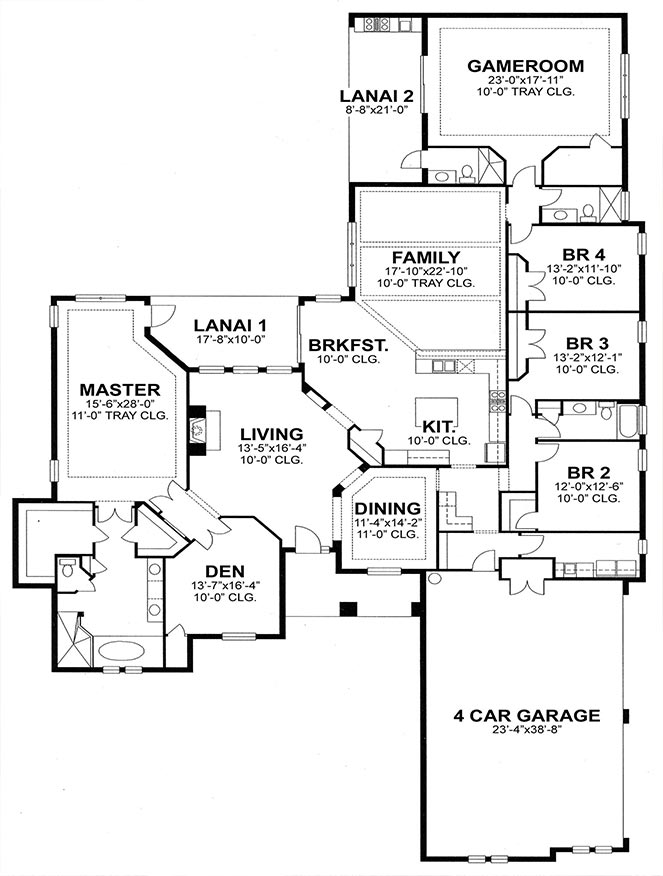 Mediteranean styling gives the exterior of this grand home great curb appeal. Ceiling heights vary from 10' to 14' and have many varied details. The master suite has a sitting area, plenty of closet space, and beautiful master bath. The bedrooms are a three way split. Bedroom and bath 4, along with the game room can be separated from the rest of the home for in-laws or older teens privacy. The oversized 4-car garage offers plenty of space for storage to keep your garage clean and organized.